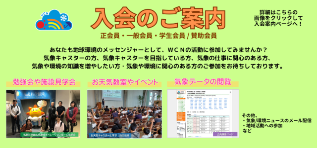 Copyright © 2015 - 2025 NPO法人 気象キャスターネットワーク Weather Caster Network (WCN) All rights reserved.