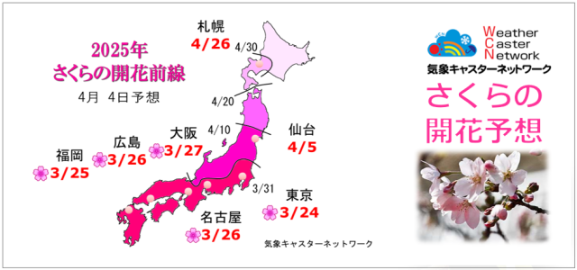 今年のさくらの開花は、西日本や東日本では平年並み、北日本では平年より早くなるでしょう。 昨年に比べると、西日本や東日本は早くなる所が多く、北日本は遅くなる所が多いでしょう。 (3月21日 更新)
