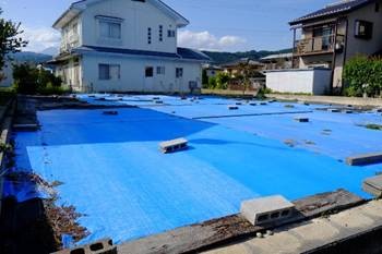 住宅地にはまだブルーシートで覆われたところも残っています。