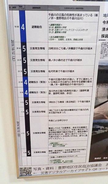 当日の防災気象情報と千曲川の様子をまとめた表示も。