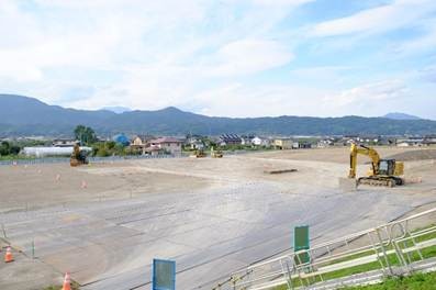 千曲川堤防沿いには整地されたばかりの広大な、そして異様なスペースが・・・。